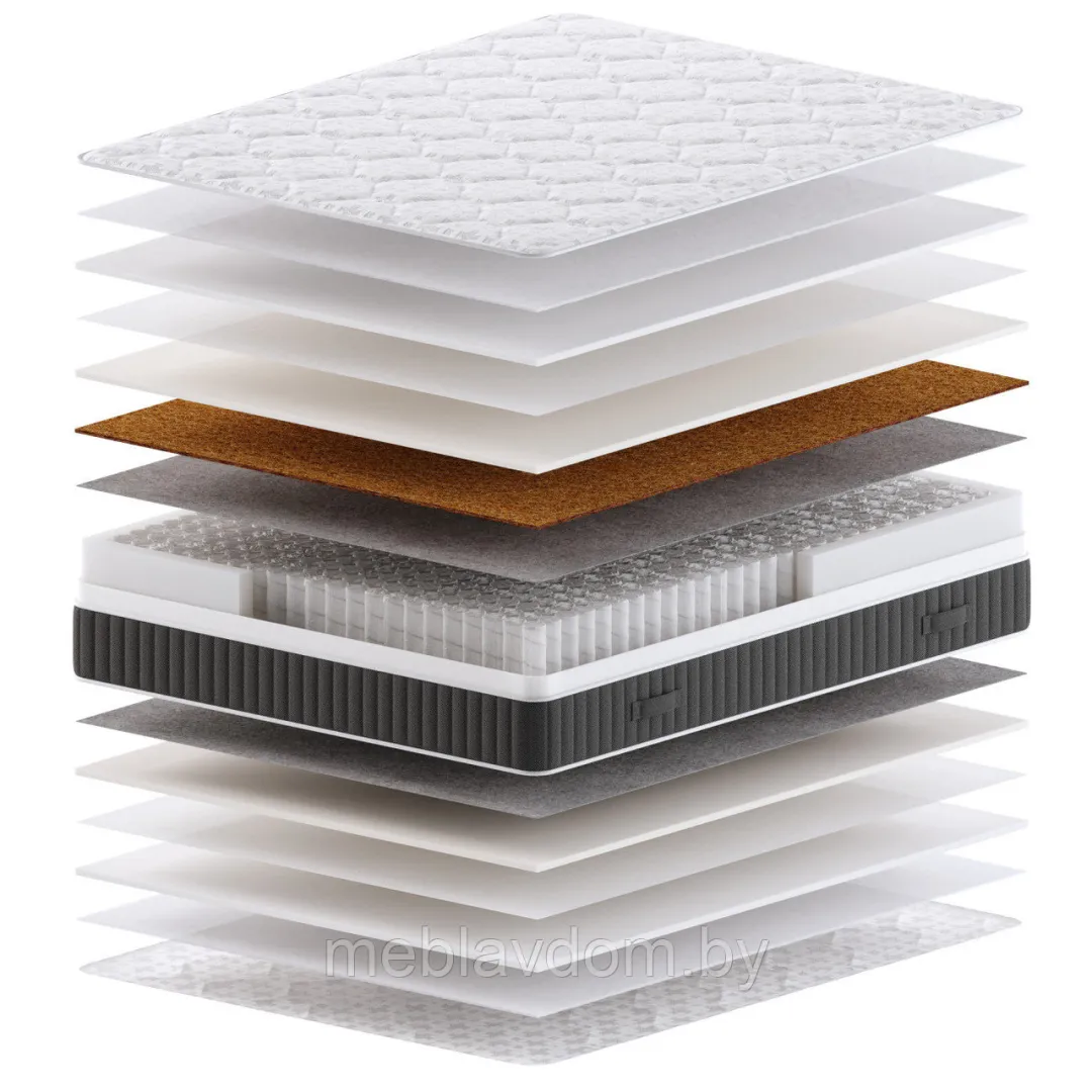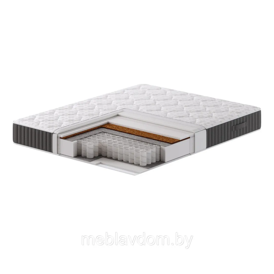 Чехол матраса, выполненный из объёмной трикотажной ткани «Jersey», простеган на основе холлкона и эластичной пены. Это улучшает анатомические свойства матраса и делает его более комфортным для сна.
